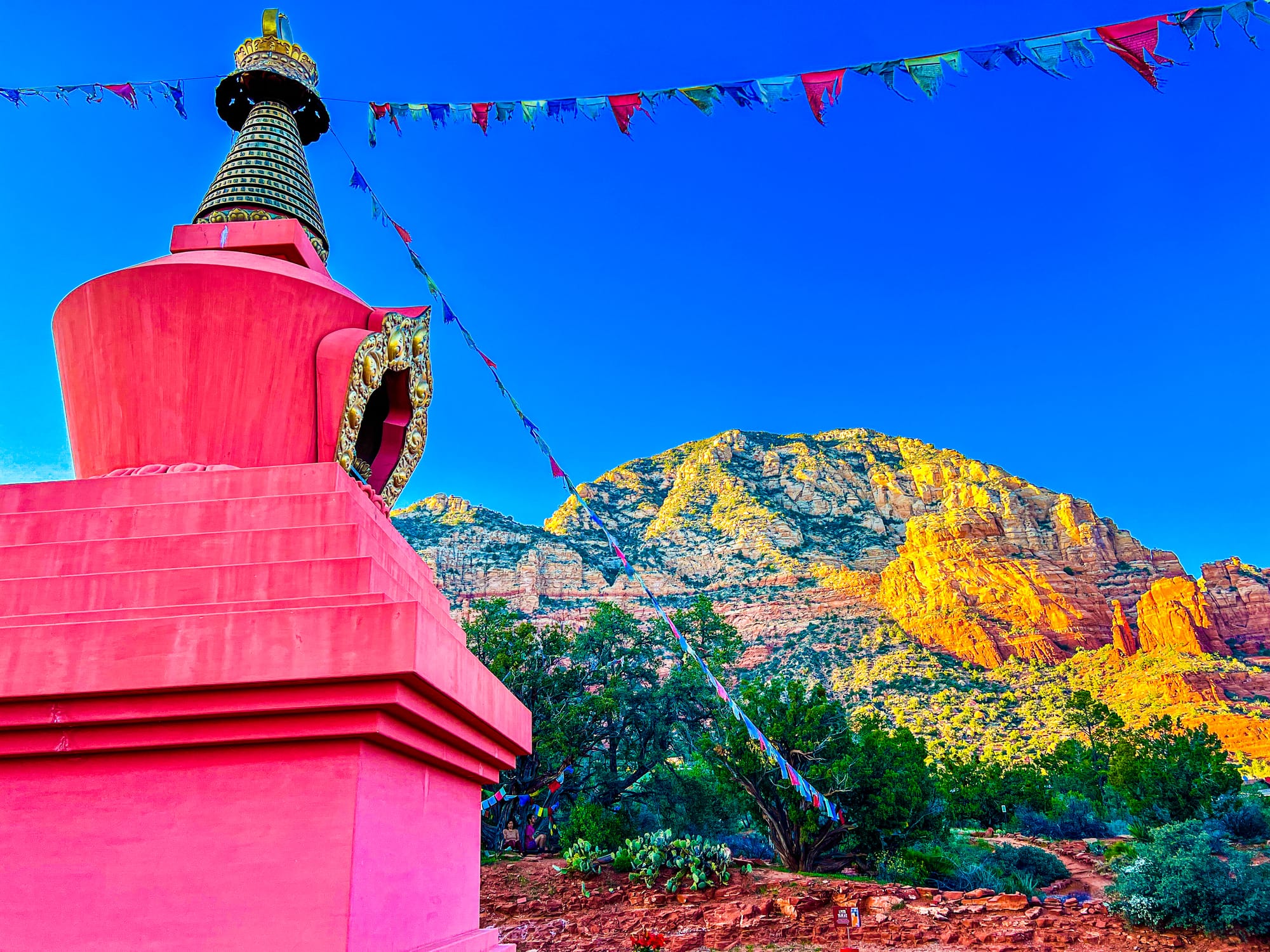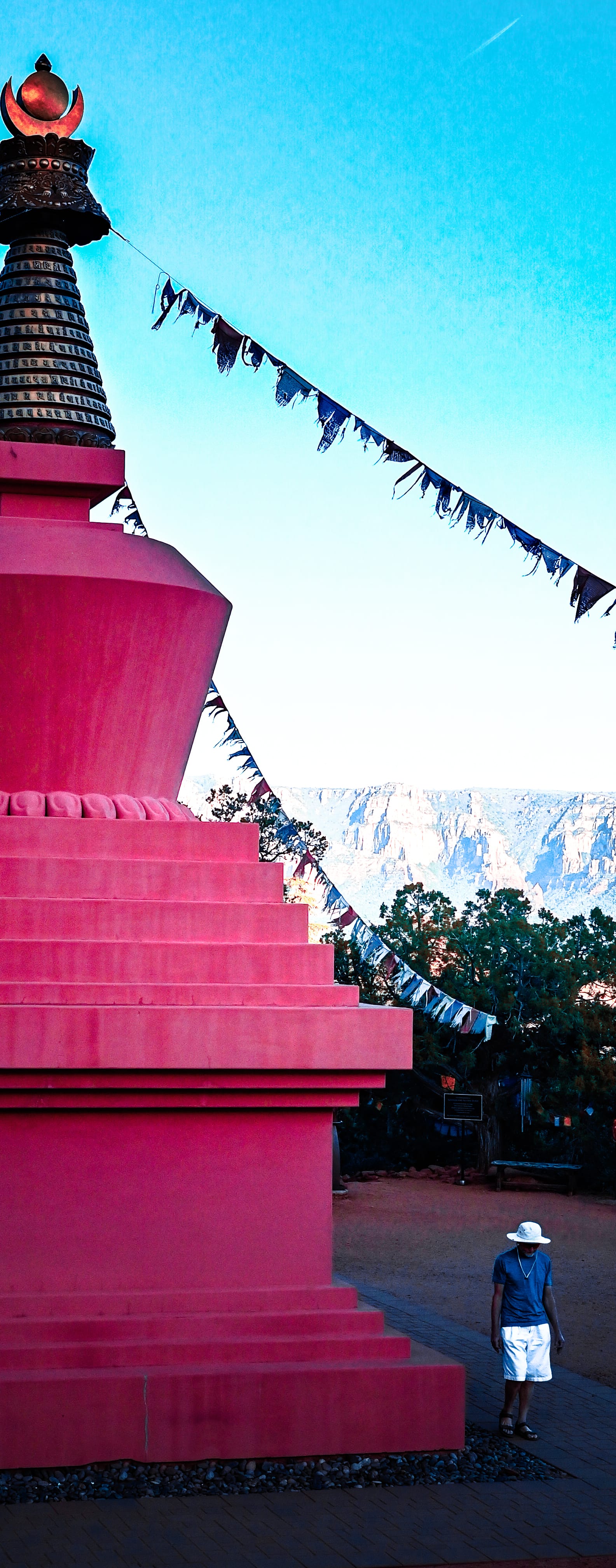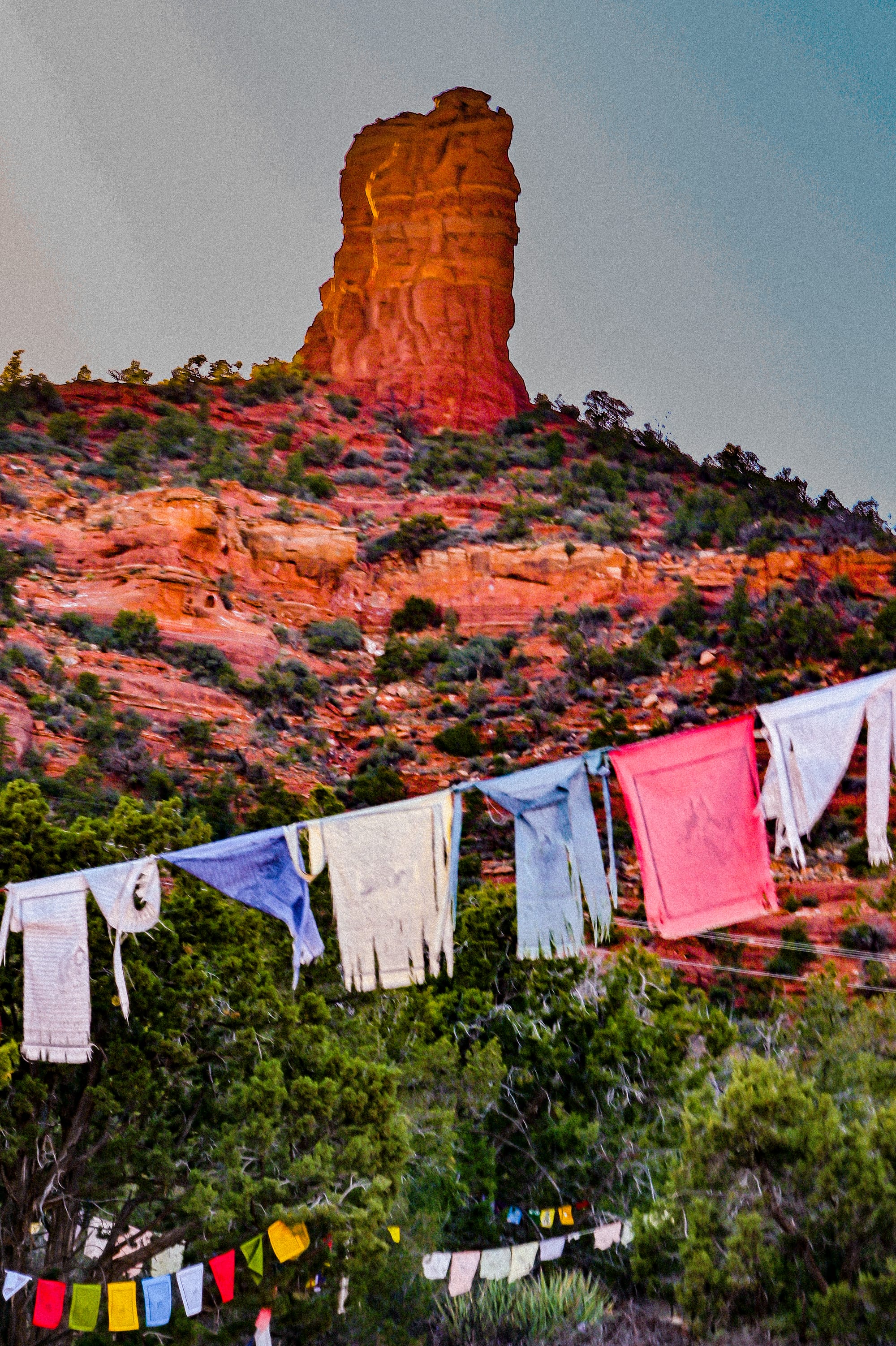 When we arrived at Chimney Rock, A sacred hush embraced the air. The red rocks whispered their ancient talk, And peace awaited everywhere. I felt transported far from home, To where the sacred prayers are spun— Like distant echoes from Tibet, Beneath the glowing setting sun. The flags in colors bold and bright— Blue, yellow, red, and white—they swayed. In every thread, a whispered prayer, A peaceful spell the breeze replayed.